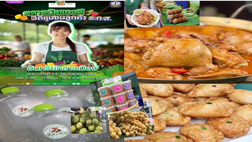 ธ.ก.ส. เอาใจสายสุขภาพและผู้รักผลิตภัณฑ์ออร์แกนิก จัดงานตลาดนัดของดีวิถีชุมชนภายใต้ธีม “อินทรีย์ กลางเมือง” รวบรวมสินค้าเกษตรอินทรีย์ ผลิตภัณฑ์ปลอดสารพิษ และของกินของใช้จากธรรมชาติ สด ใหม่ คุณภาพดี มีเอกลักษณ์เฉพาะถิ่น พร้อมทั้งมีประโยชน์ปลอดภัยและคุณค่าทางโภชนาการต่อสุขภาพ ส่งตรงจากเกษตรกรถึงมือผู้บริโภคโดยตรงกว่า 60 ร้านค้ารวมไว้ในงานครั้งนี้ ระหว่างวันที่ 24 – 26 กันยายน บริเวณด้านหน้า ธ.ก.ส. สำนักงานใหญ่ กรุงเทพฯ