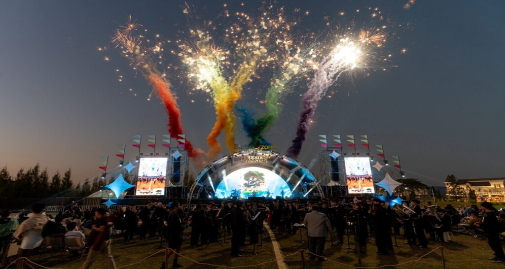 แม้จะเป็นปีแรกของการจัดงาน แต่ทุกองค์ประกอบถูกออกแบบและดำเนินการด้วยมาตรฐานระดับมืออาชีพ ตั้งแต่โครงสร้างเวที แสง สี เสียง ที่กลมกลืนกับภูมิประเทศ ไปจนถึงการบริหารพื้นที่รองรับผู้ชมมากกว่าสามพันคนได้อย่างลงตัว ส่งผลให้ค่ำคืนธรรมดา กลายเป็นประสบการณ์ที่ผู้ร่วมงานจำนวนมาก ยกให้เป็น “หนึ่งในสถานที่จัดคอนเสิร์ตกลางแจ้งที่น่าประทับใจที่สุดของปี”