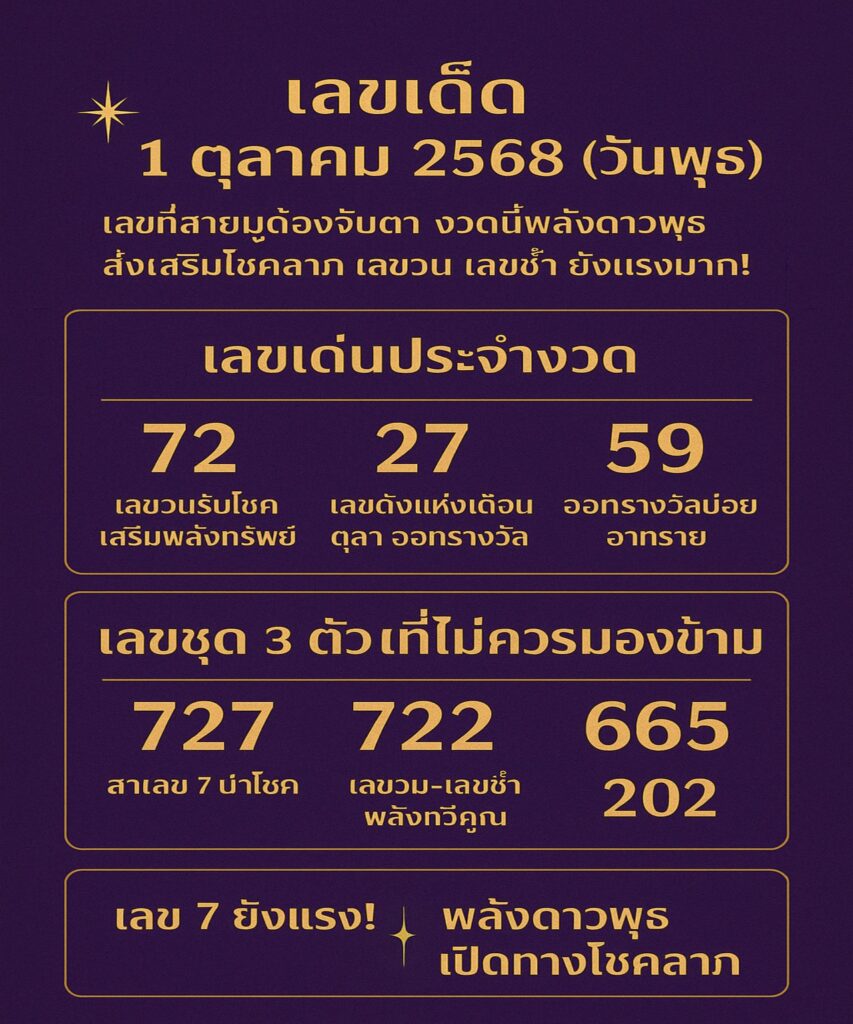 7 มาแรง เลขเด่น น่าจับตา งวด 1 ต.ค. 2568
