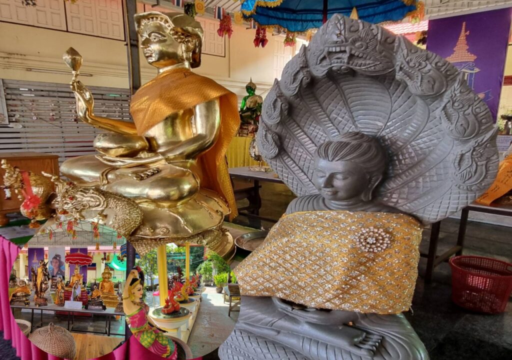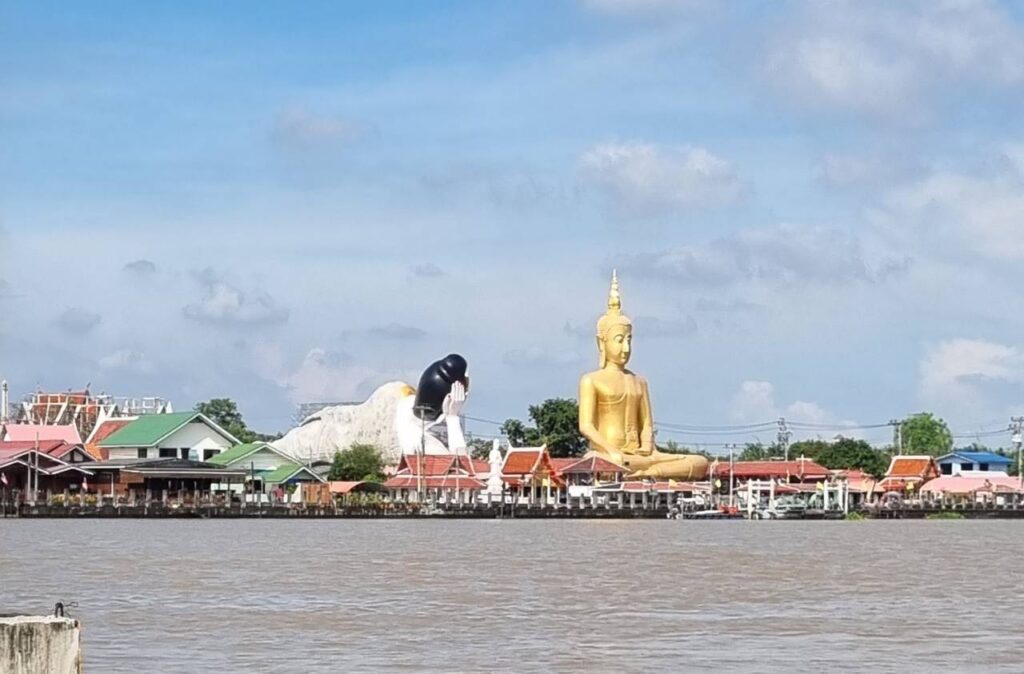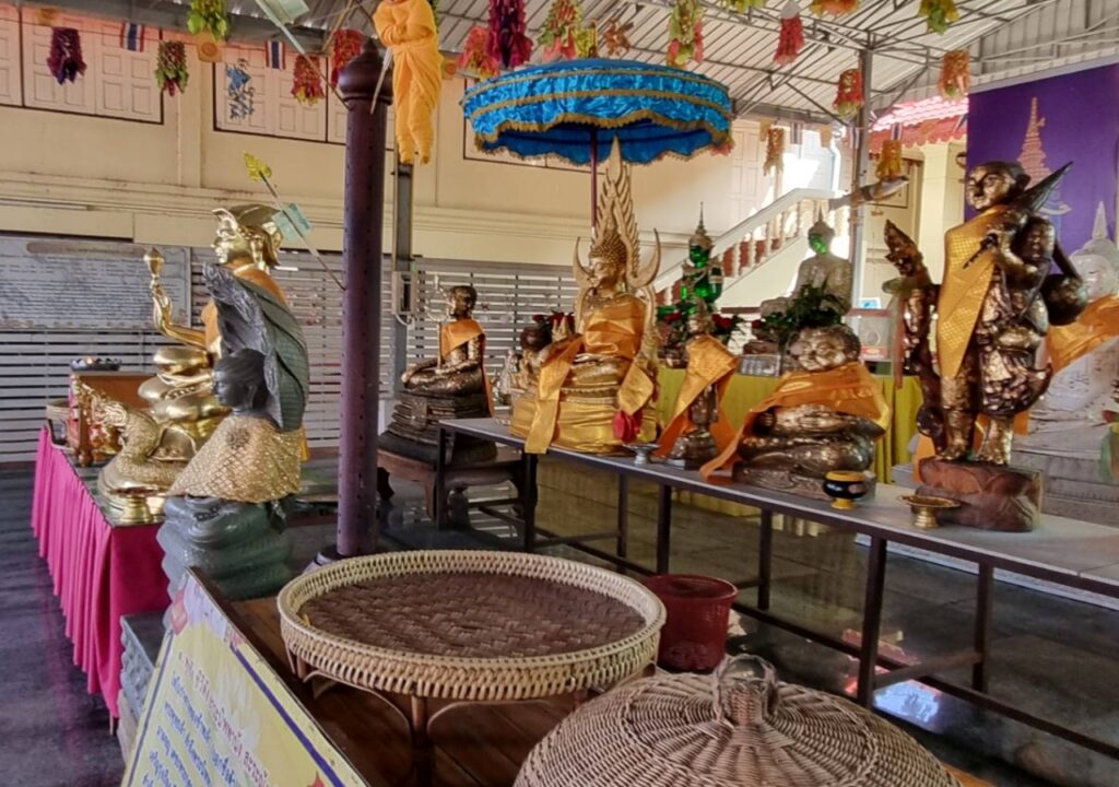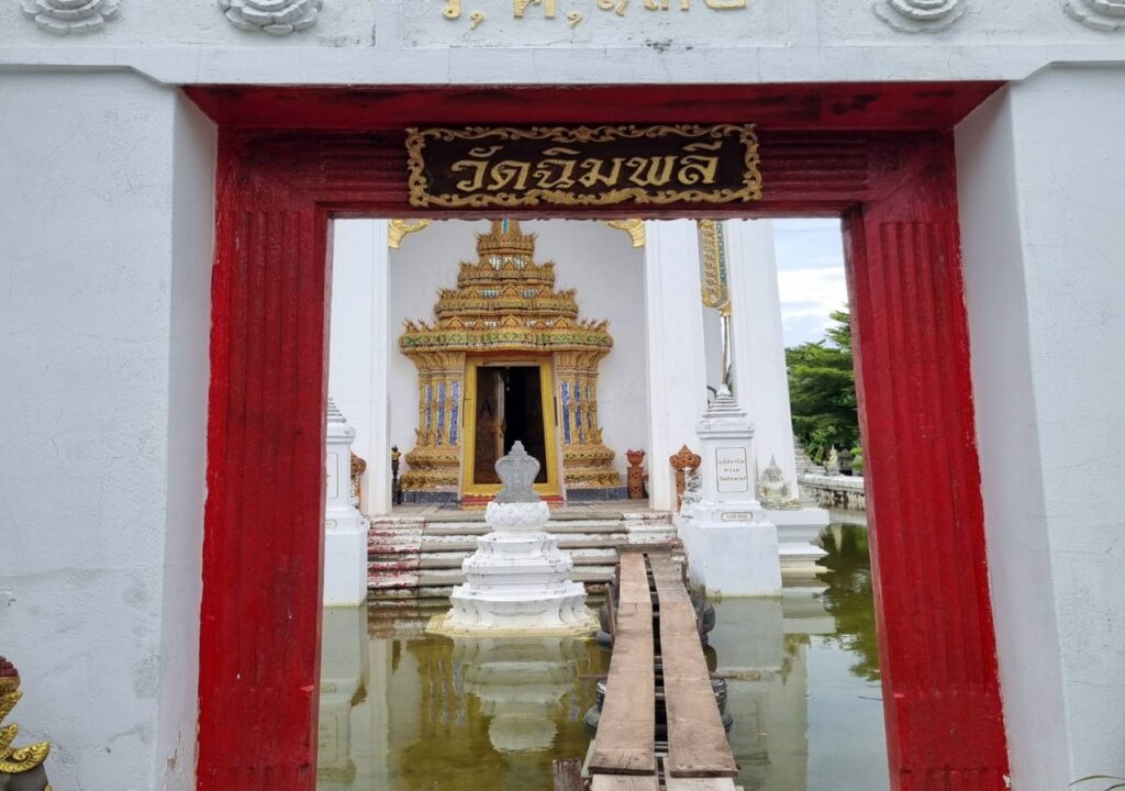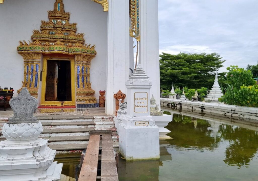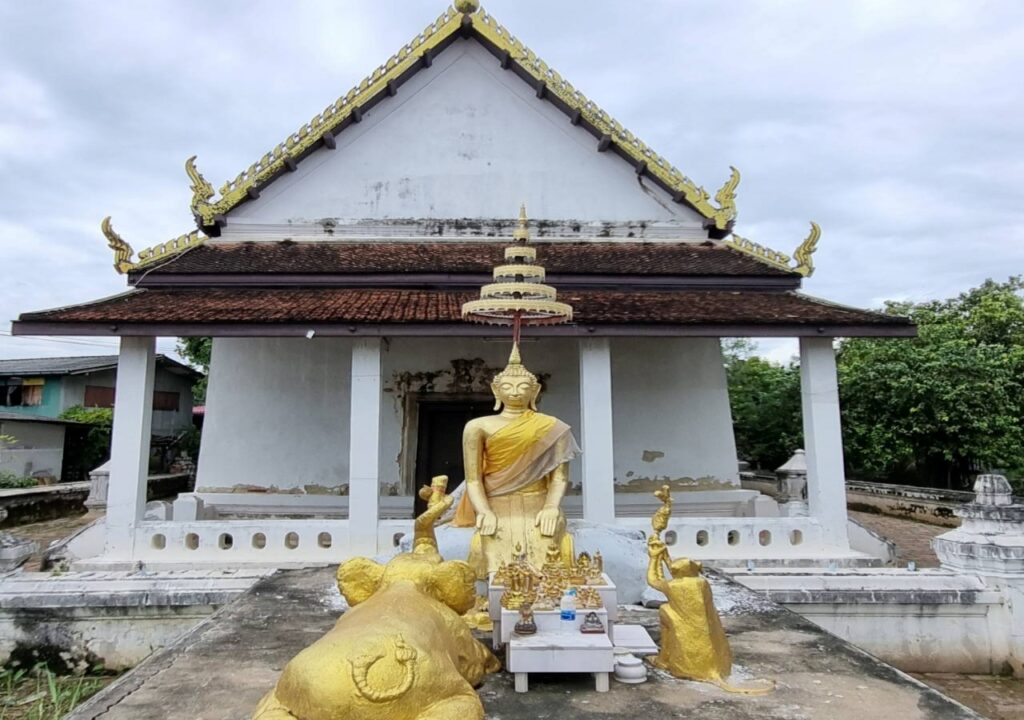 ปิดท้ายในการไปเยือนวัดเสาธงทอง สร้างเมื่อพ.ศ. 2313 เดิมชื่อ ‘วัดสวนหมาก’ มีพระประธานเก่าแก่ปางมารวิชัย มีพระเจดีย์ย่อมุมไม้ 20 พระเจดีย์ระฆังคว่ำ พระเจดีย์กลีบมะเฟืองอวบ จะเรียกว่าองค์สุดท้ายของโลก ก็ว่าได้ และบ่อน้ำหลวงตากลับ รวมถึงต้นยางอายุ 200 ปี ได้มีนักท่องเที่ยวผู้ศรัทธามาสักการะบูชาเป็นจำนวนมากไม่ขาดสาย