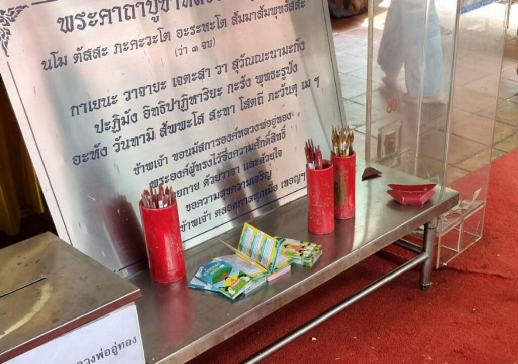• ธูป เทียน ดอกไม้สด (ดอกบัวหรือดอกดาวเรือง)