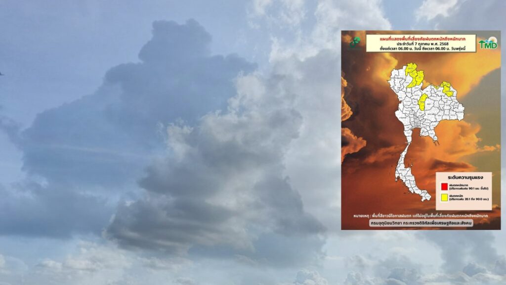 • ช่วงวันที่ 7–8 ต.ค. ไทยตอนบน ยังมีฝนตกหนักบางแห่ง